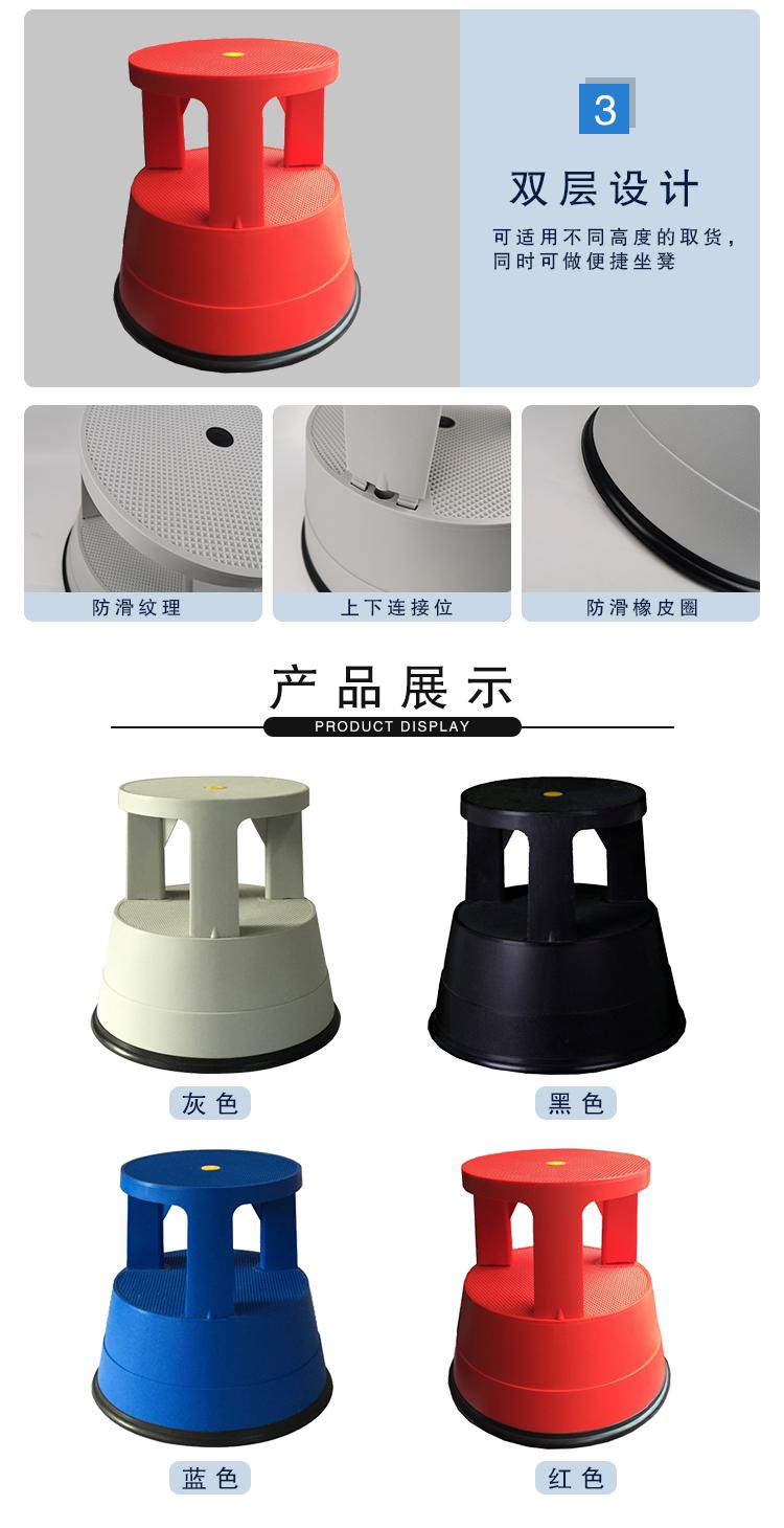 安赛瑞 塑料脚踏梯凳 理货凳超市取货凳登高凳 图书馆洗车移动梯凳 多功能仓库可移动脚踏圆凳 红色 25230