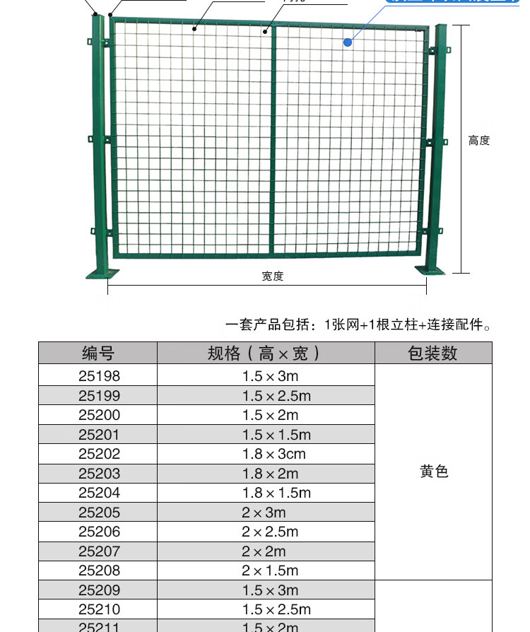 安赛瑞 仓库隔离网 2×3m 工厂车间隔断网铁丝网防护网 快递分拣隔断网护栏 一张网一根柱 绿色 25216