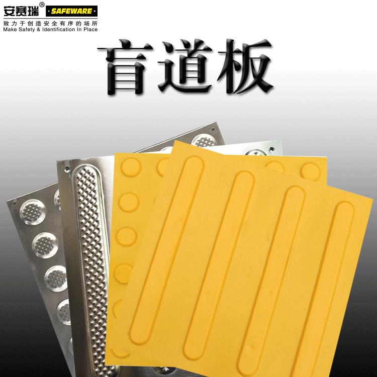 安赛瑞 PVC盲道砖人行道指路板 无障碍导盲贴防滑板 10个装 黄色点状边长30cm 25372