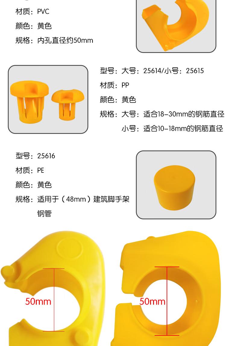 1 型号25616,材质为PE塑料,颜色黄色,适配48mm建筑脚手架钢管