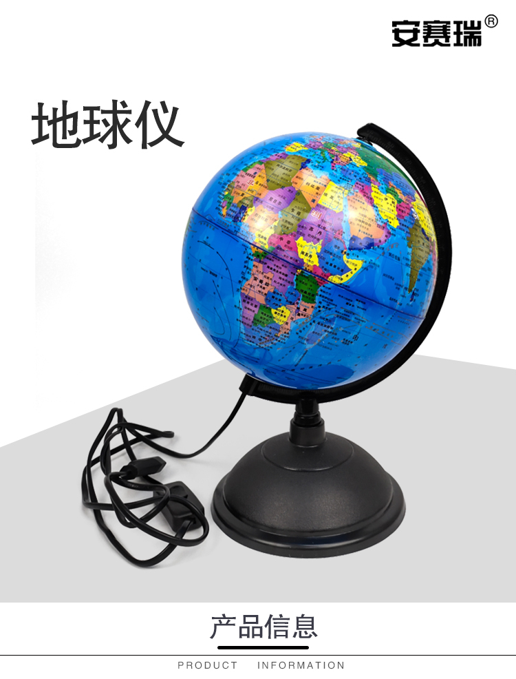 安赛瑞26622地球仪,球体直径32cm,尺寸适中便于观察