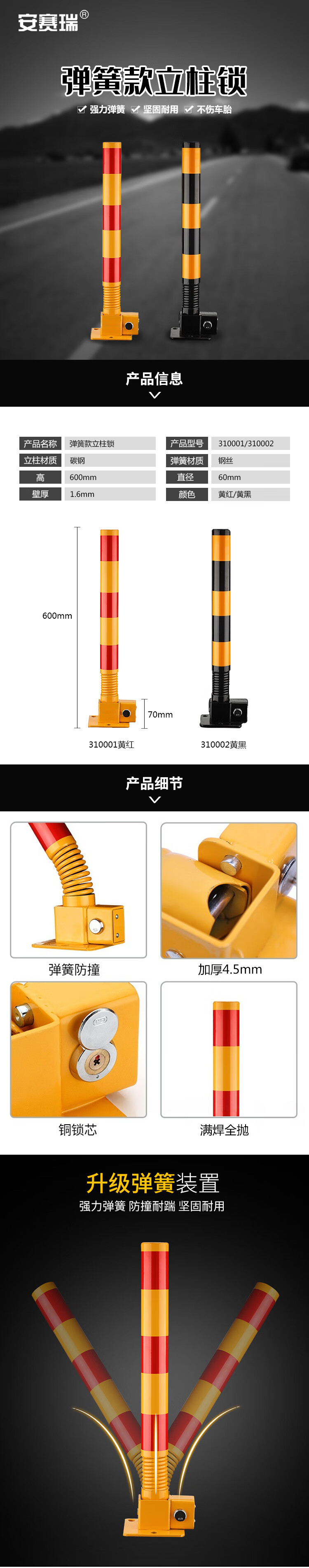 安赛瑞 防撞车位锁 活动停车桩弹簧立柱占位锁 车库锁防压挡车器 手动停车位地锁 黄红 310001