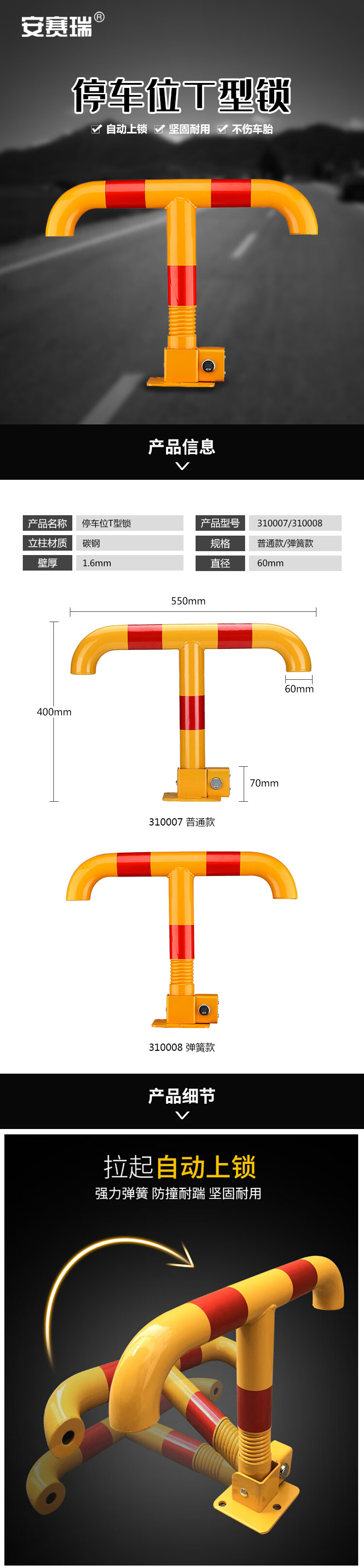 安赛瑞 T型车位锁 活动停车桩 占位车库锁防撞防压挡车器 手动停车位地锁 黄红 310007