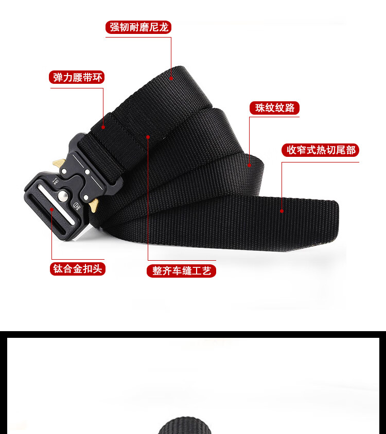 1 强韧耐磨尼龙材质,确保腰带在恶劣环境下依然保持耐用性。