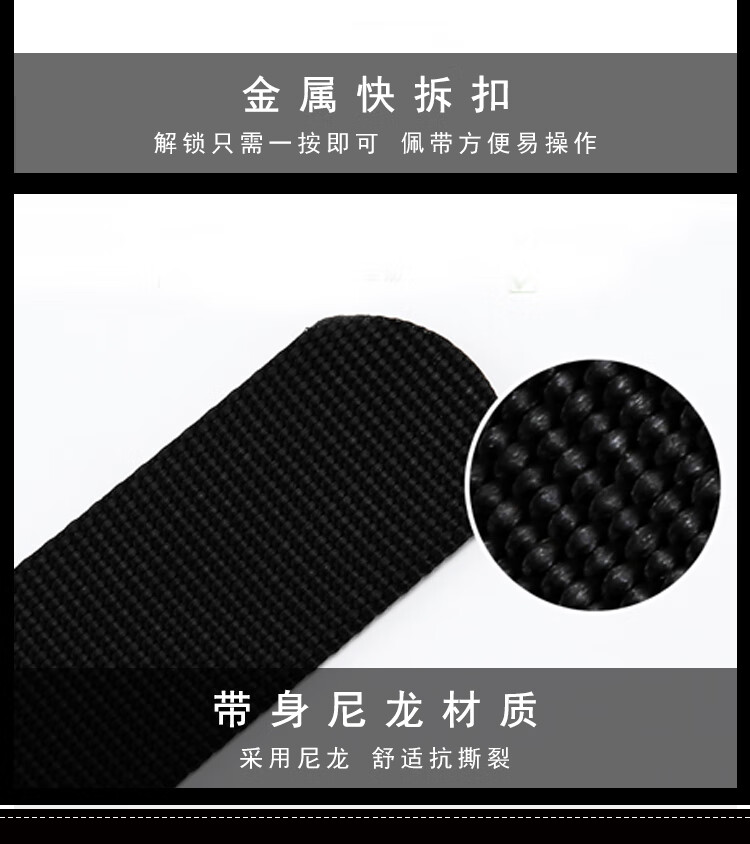 6 金属快拆扣设计,解锁只需一按即可,佩戴方便易操作,适合快速响应的需求。