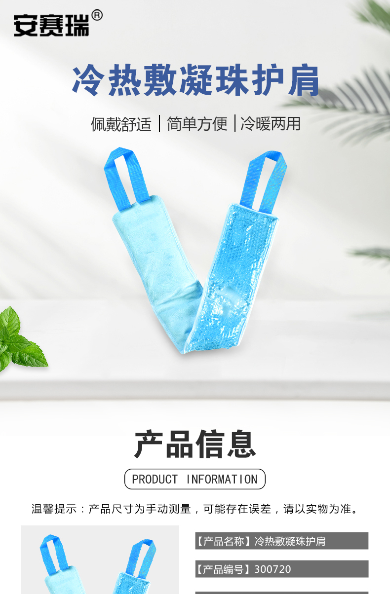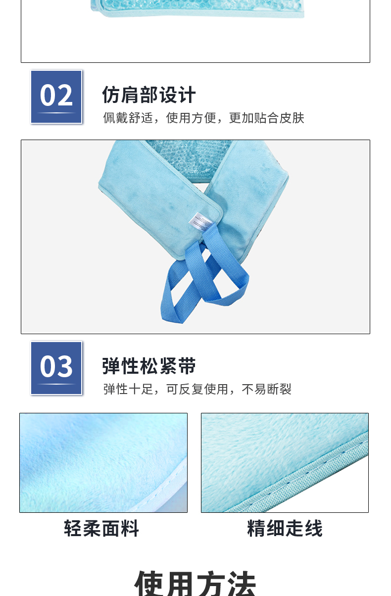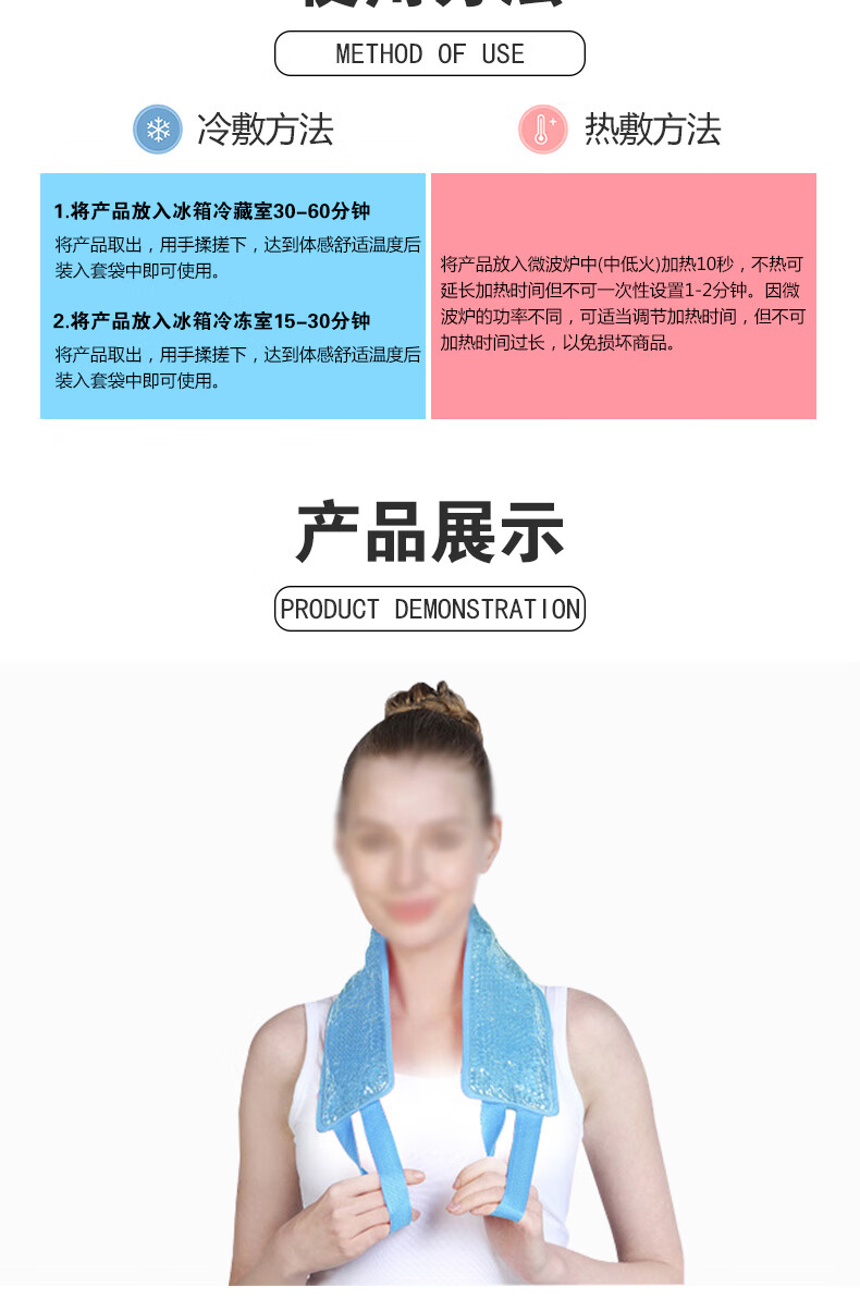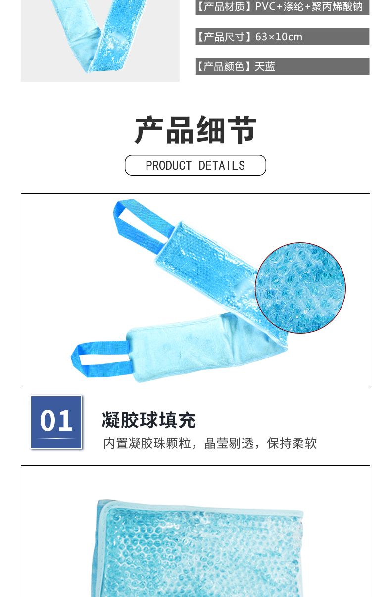 安赛瑞 肩颈冰敷包 冷热敷袋 冷敷护肩护颈袋 可绑型护理袋 夏季降温冰垫 天蓝 63x10cm 300720
