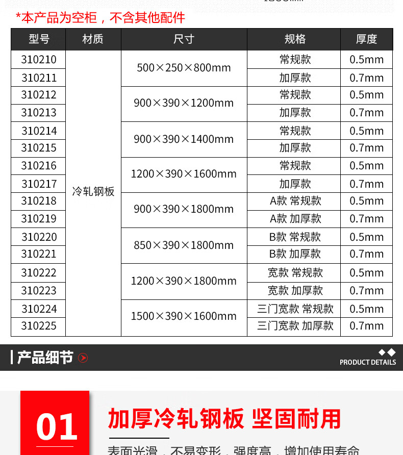 安赛瑞 消防器材放置柜 服装消防工具柜 灭火器柜 空柜 微型消防站 高800mm长500mm宽250mm 加厚款 310211