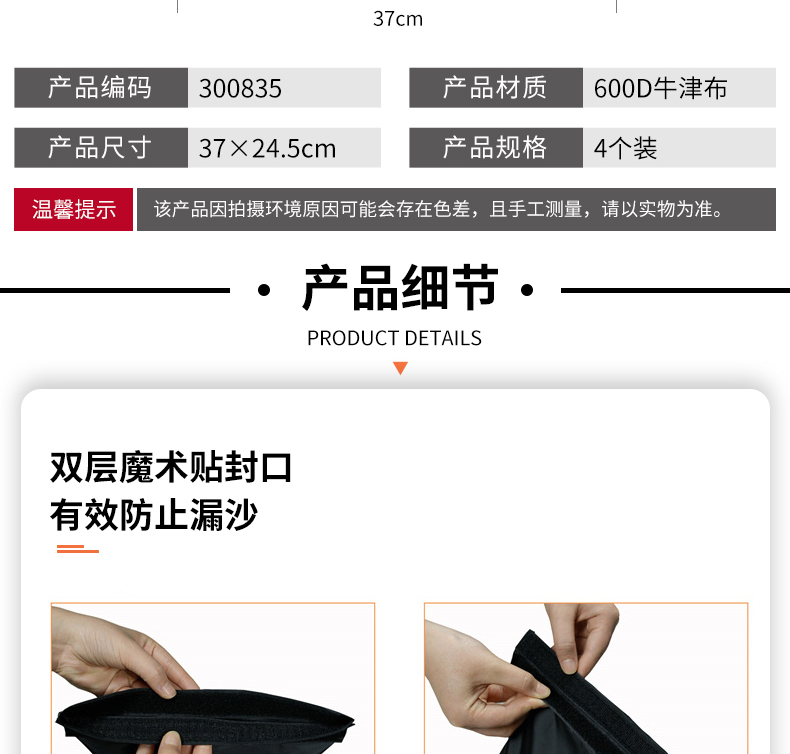 安赛瑞 防风固定沙袋 37cm×24.5cm 不含沙 橙色 4个