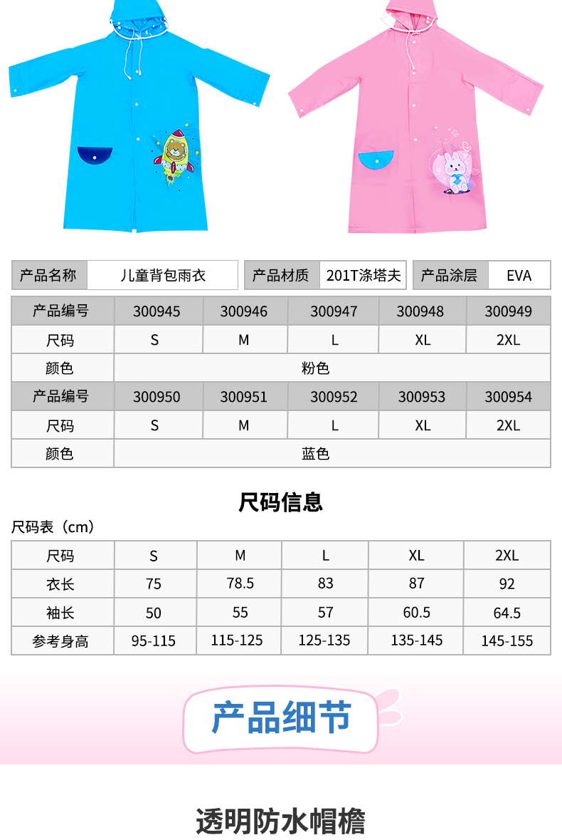 1 品牌安赛瑞,型号300951,专为男女中大童设计的背包雨衣
