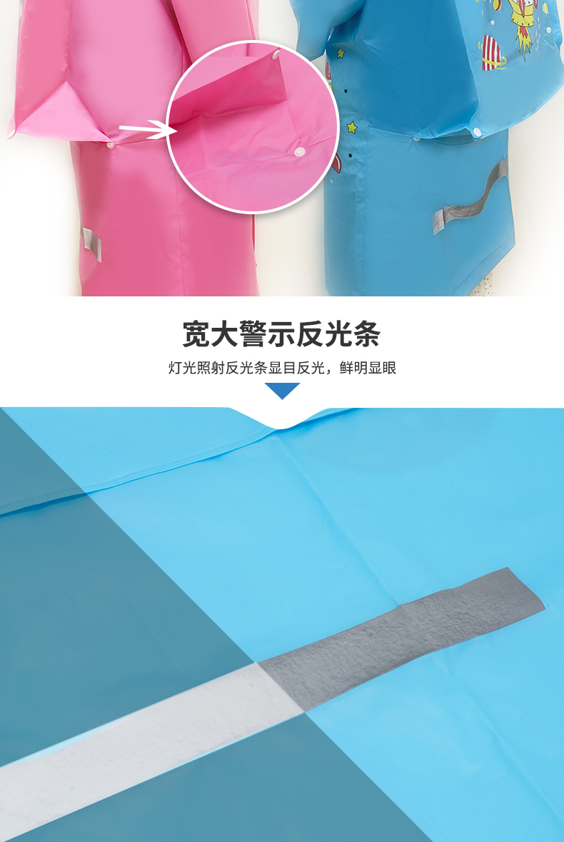5 带有宽大警示反光条,灯光照射下显目反光,提升雨天出行安全性