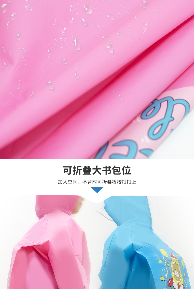1 儿童上学、放学途中遇降雨时使用,保护身体及书包不被淋湿