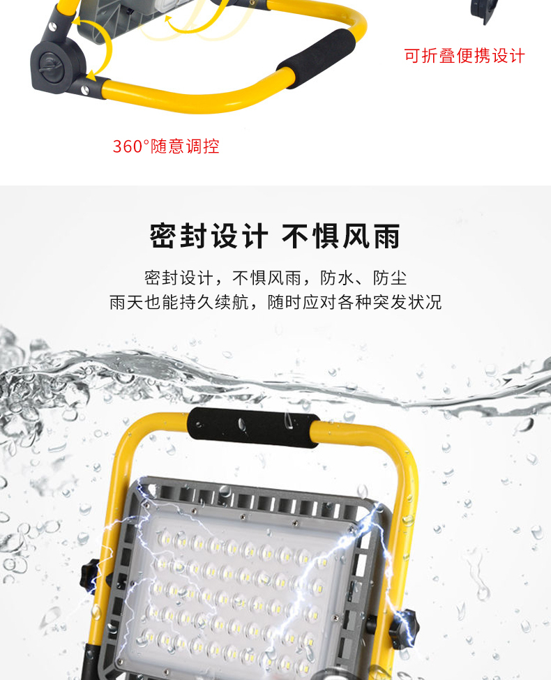 4 可折叠便携设计:灯体结构可折叠,携带方便,适合各种户外和紧急情况使用。