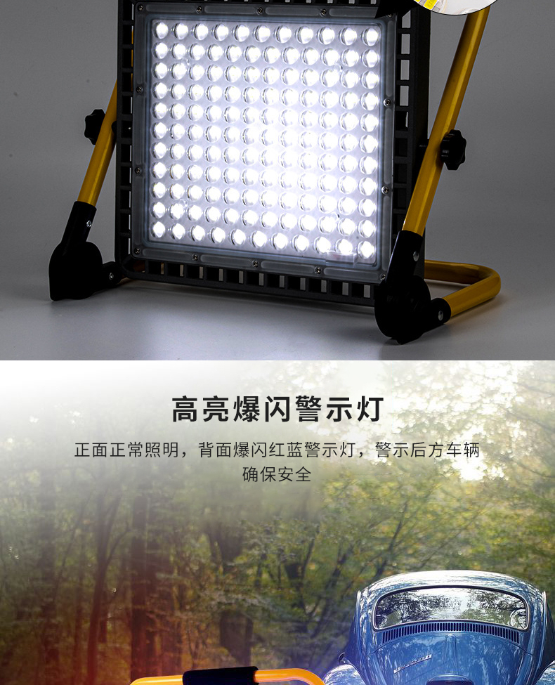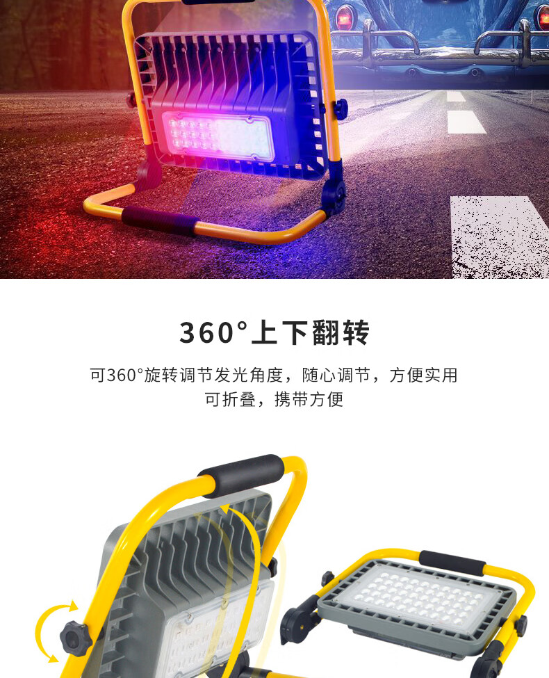 2 爆闪警示功能:正面正常照明,背面爆闪红蓝警示灯,有效警示后方车辆,确保作业安全。