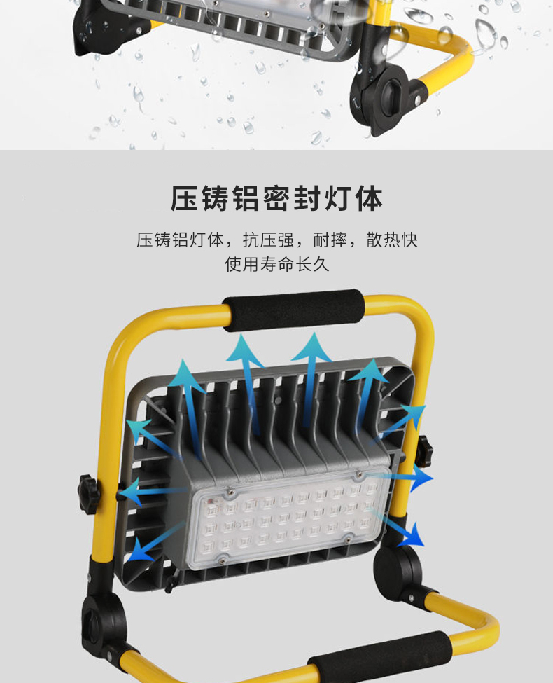 6 压铸铝密封灯体:采用压铸铝材质,抗压强,耐摔,散热快,使用寿命长久,确保设备稳定运行。
