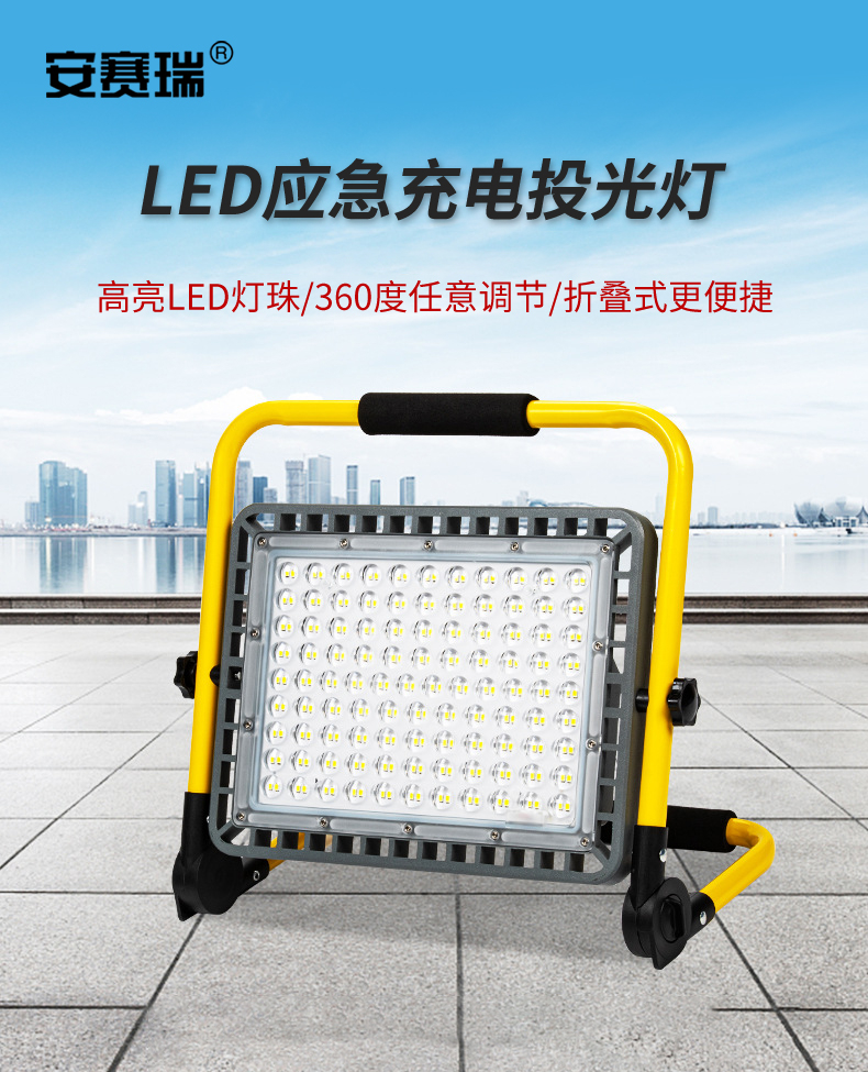 安赛瑞 LED手提投光灯 摄影补光灯户外防水警示灯 夜市摆摊露营野营灯 红蓝爆闪200w 310344