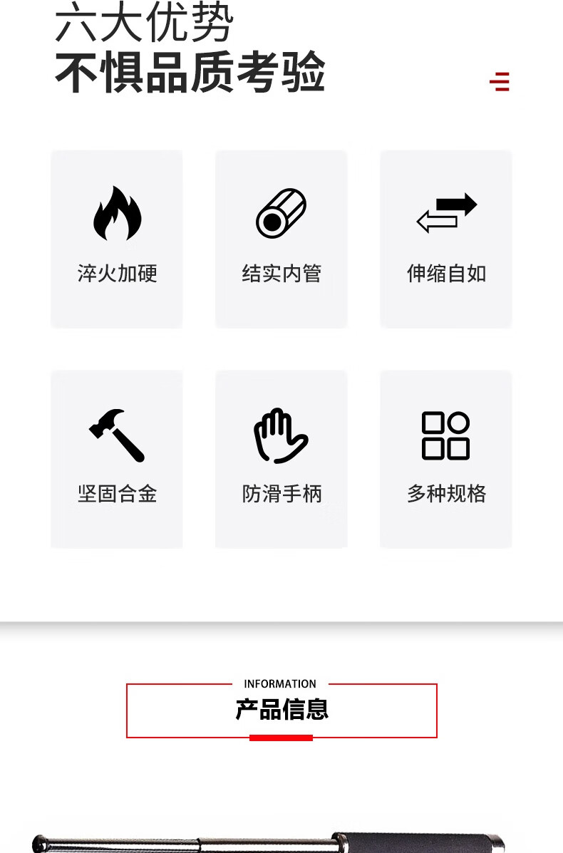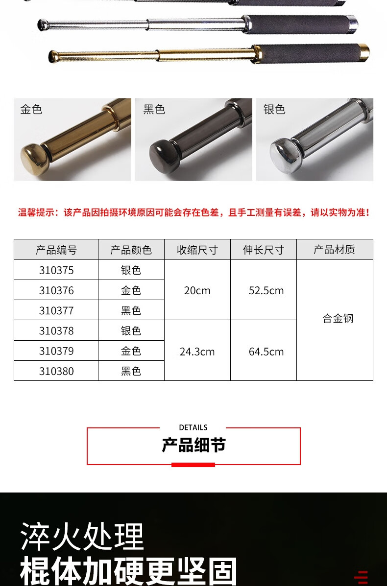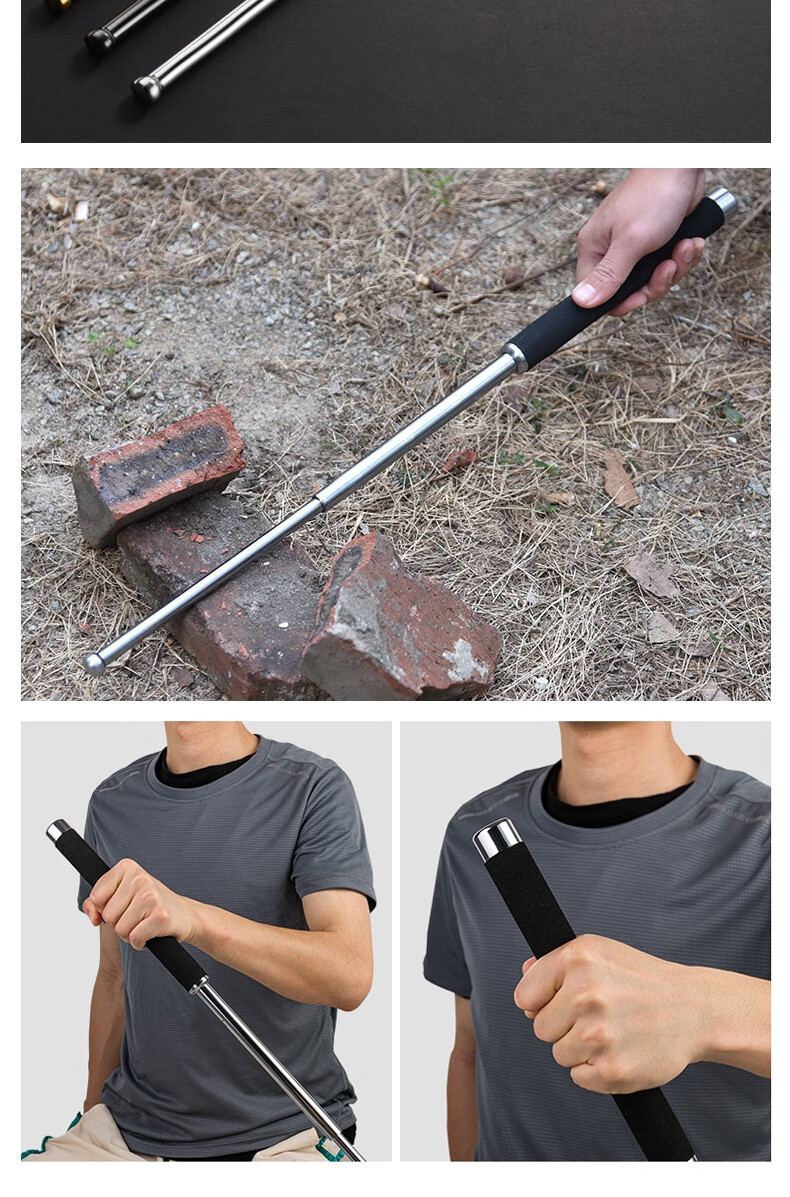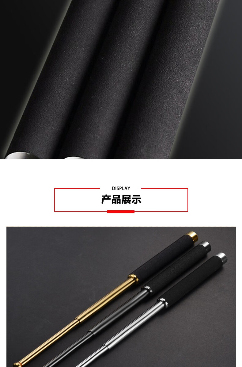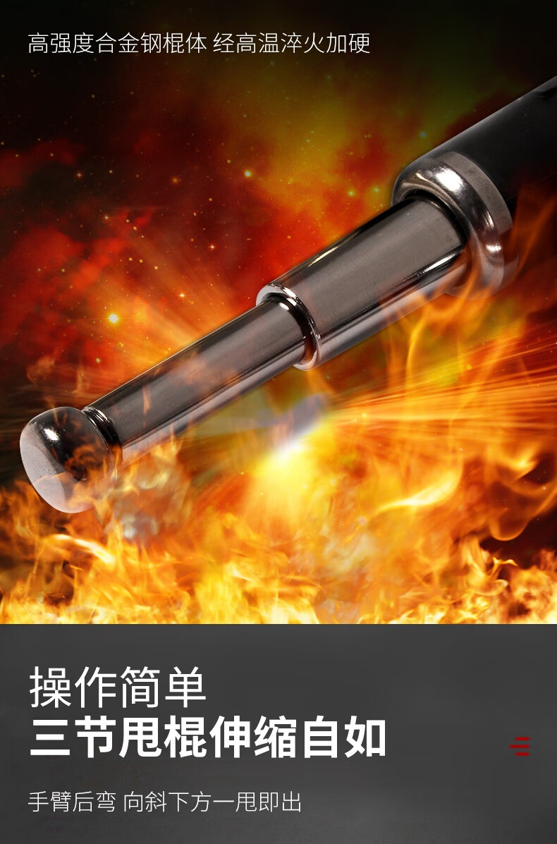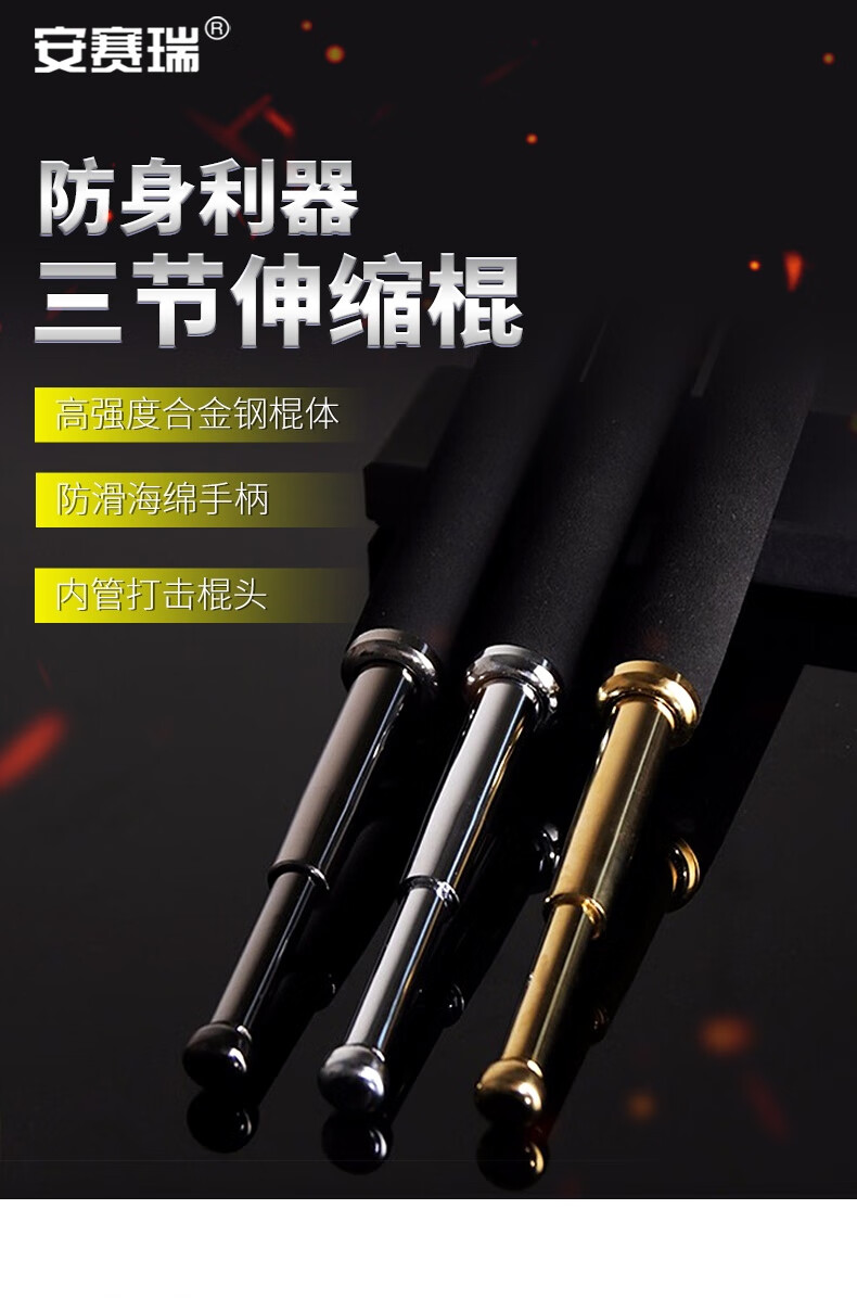 安赛瑞 三节伸缩棍 车载防身武器 伸缩防身棍 保安三节棍合金钢棍 黑色合金钢21寸 310377