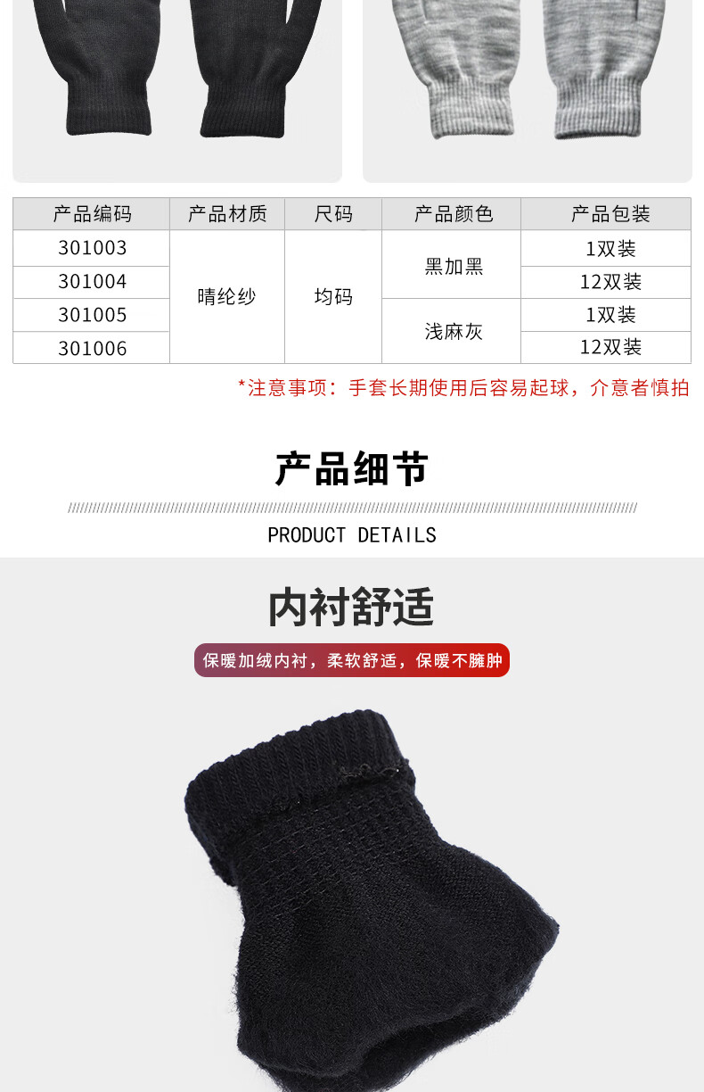 2 手套长期使用后易出现起球现象,对起球敏感的用户请谨慎选购