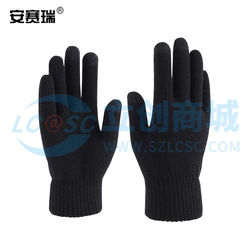 安赛瑞 全指针织手套 可触屏五指保暖加绒防寒骑行装备 黑色 1双装 301003