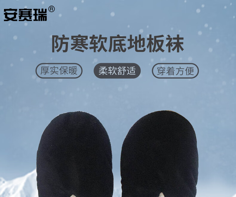 安赛瑞 防滑点胶加绒袜子 秋冬男女冷库下矿防寒短筒地板袜 黑色均码 适合43至45码 301020