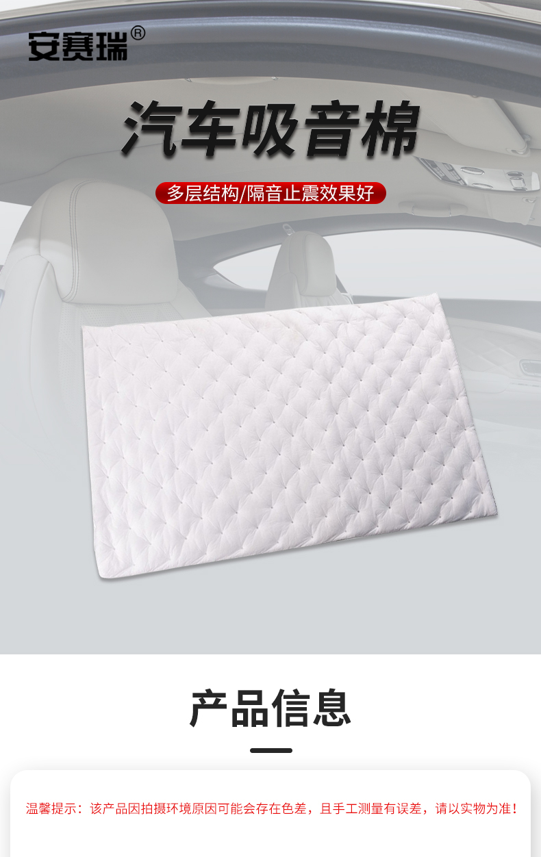 安赛瑞 汽车隔音棉 长800mm宽500m 隔音板 室内吸音棉 背胶自粘 310770