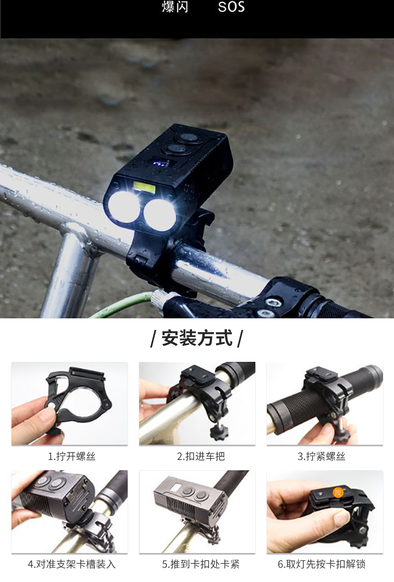 应急防水设计:可应对雨天骑行等潮湿环境,保障复杂天气下的照明稳定性