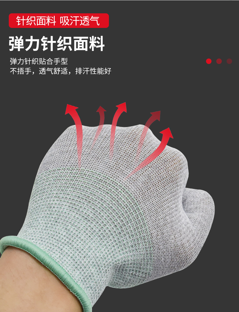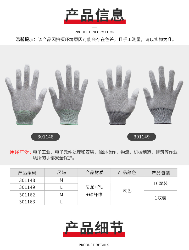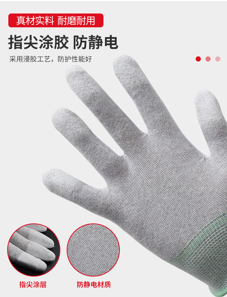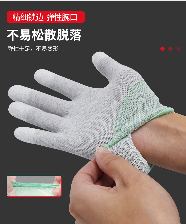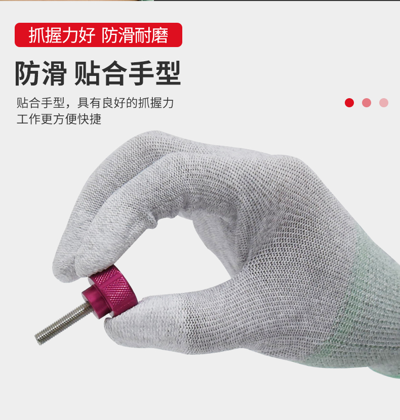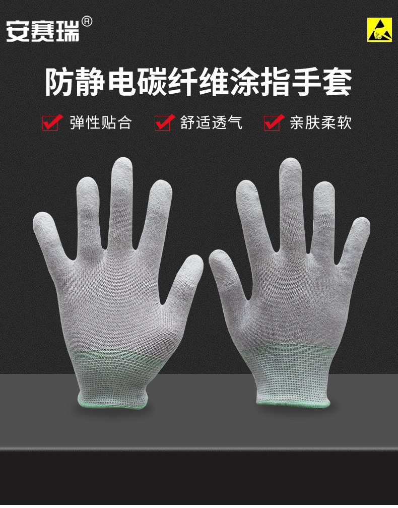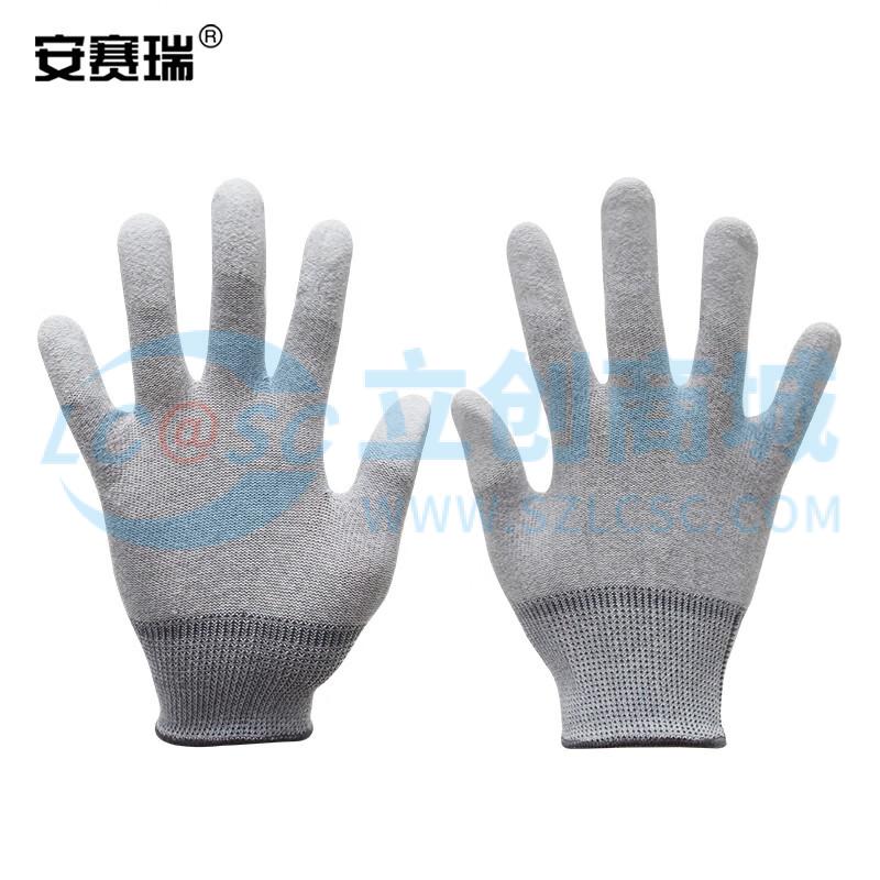 安赛瑞 碳纤维防静电手套 PU涂指工作手套 无尘车间劳保手套 L 301163