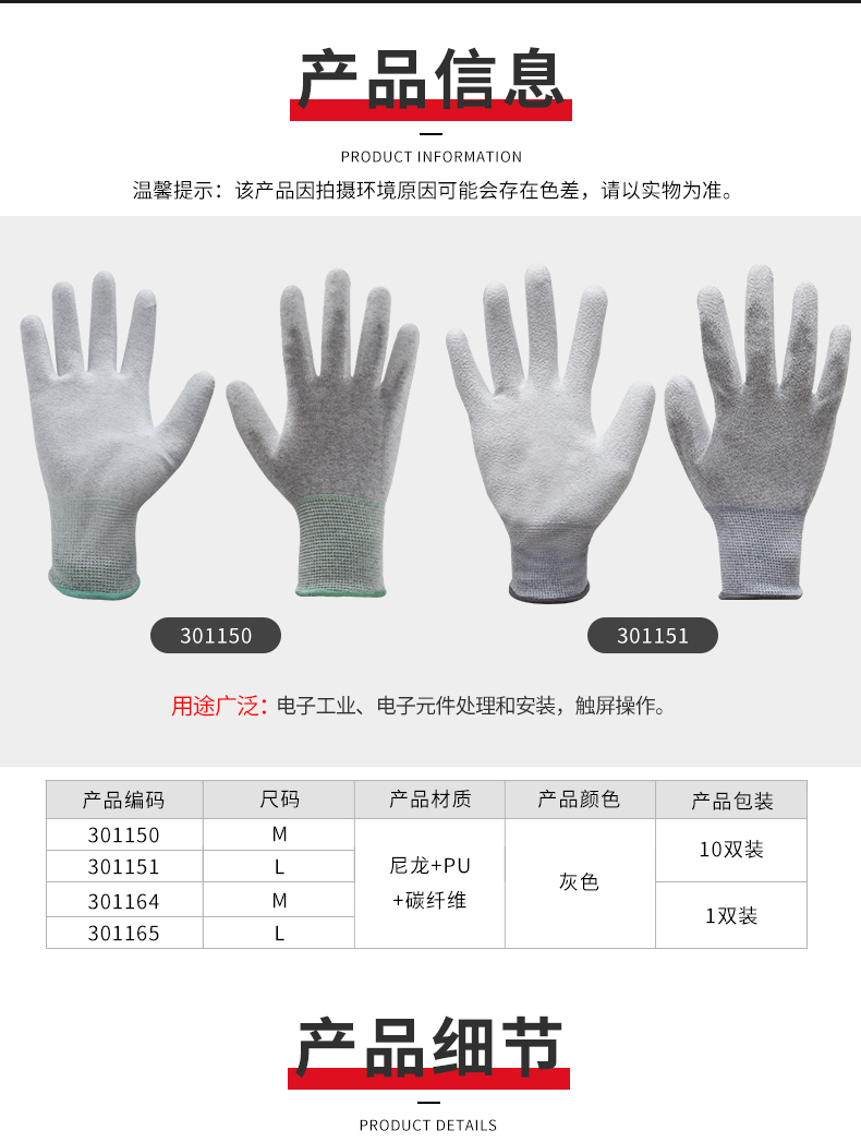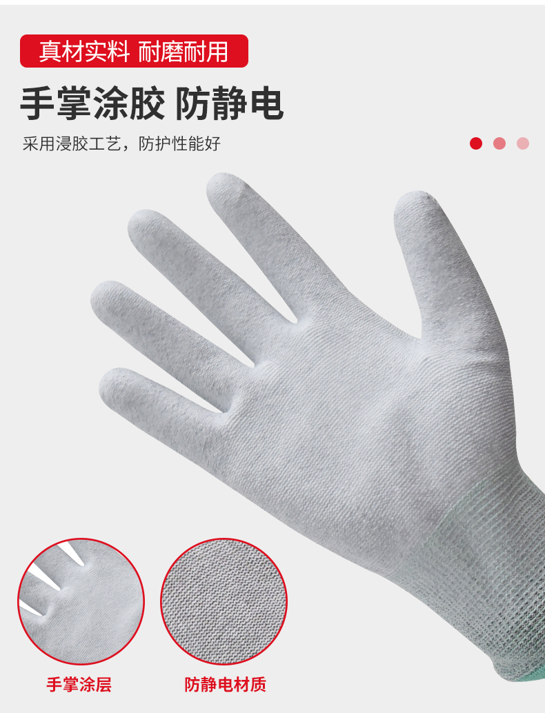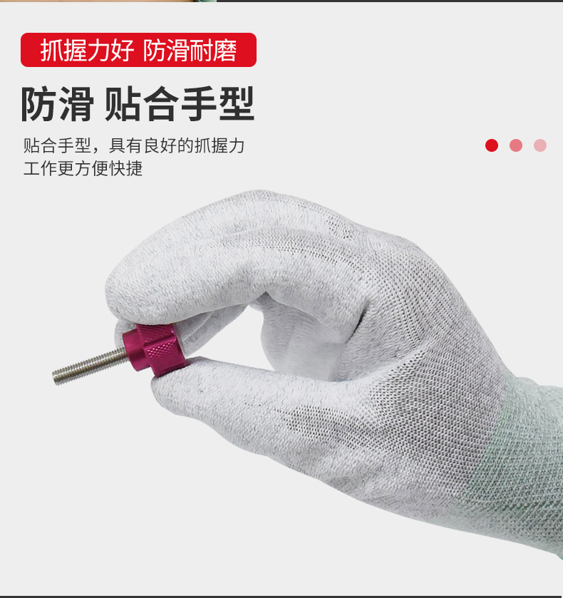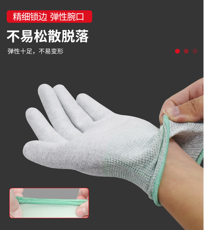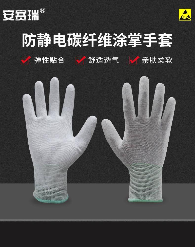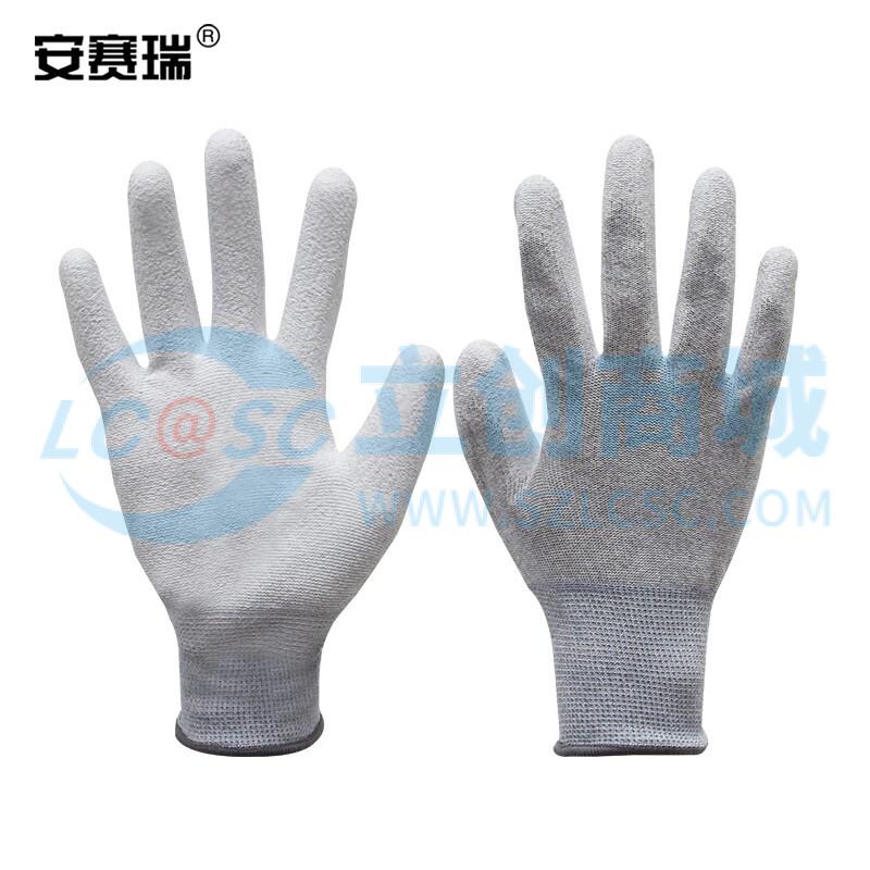安赛瑞 碳纤维防静电手套 PU涂掌工作手套 无尘车间劳保手套 L 301165