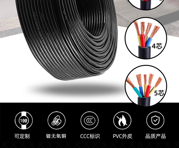 国标RVV电线缆 世腾 300/500V布电线 5芯6平方