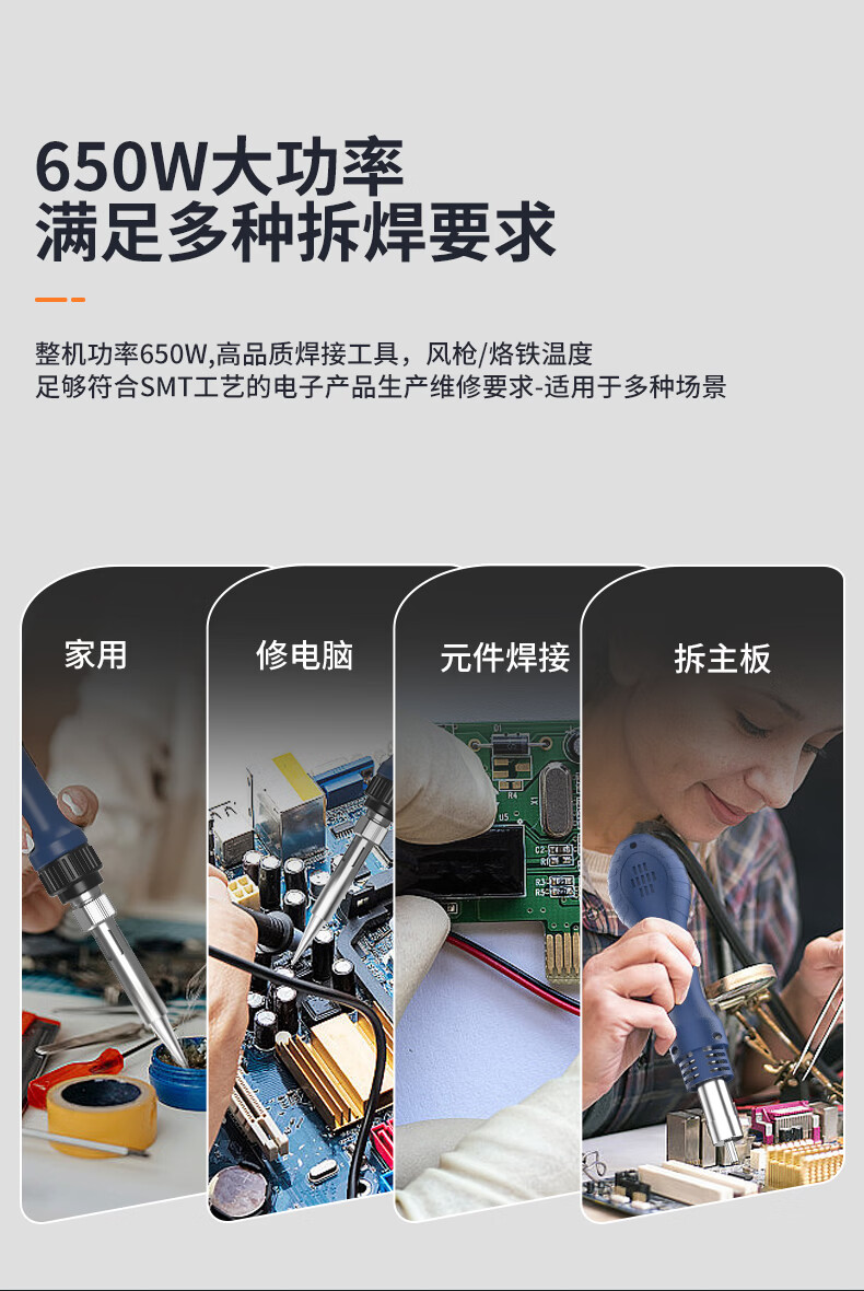 8 建议定期清洁烙铁头和风枪喷嘴,避免焊渣堵塞影响热效率和使用寿命。