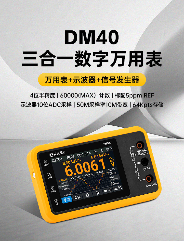 三合一多功能:集成万用表、示波器、信号发生器功能,满足多场景测试需求