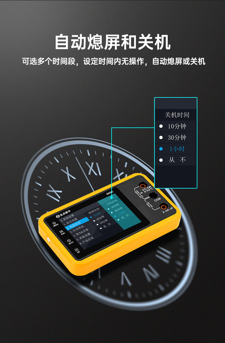 实用设计:自动熄屏/关机(可选10分钟/30分钟/1小时/从不),USB通信支持数据拷贝和固件升级