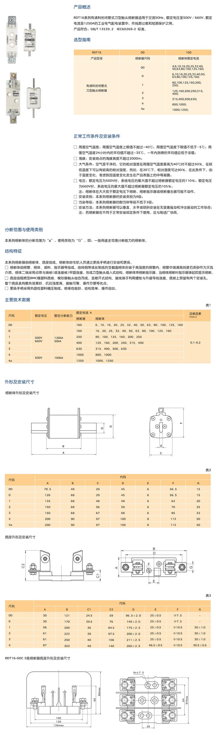 符合GB15099.2及IEC60269-2标准,适用于交流50Hz电路,额定电压覆盖500V/660V,额定分断能力强(00规格可达120kA),能有效应对线路过载与短路故障