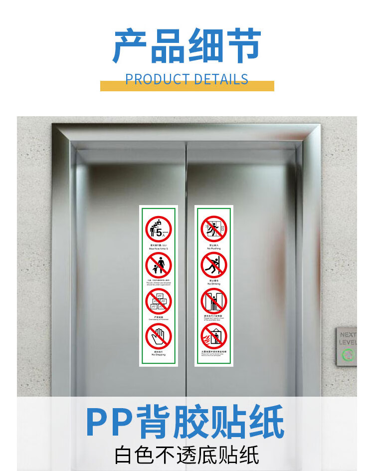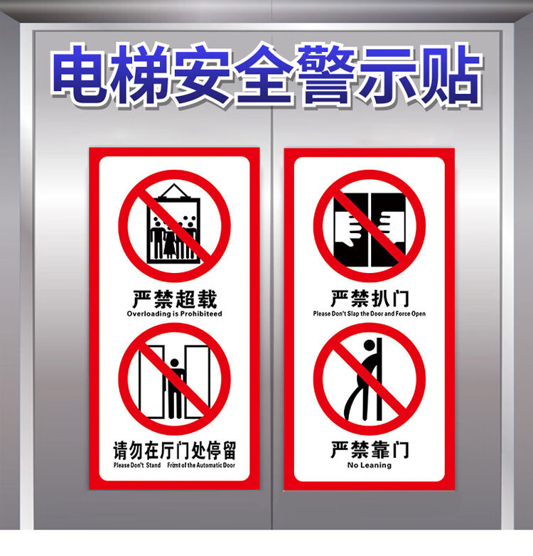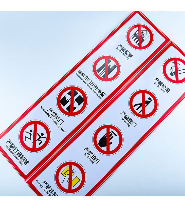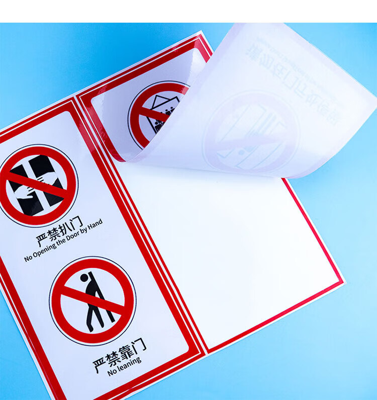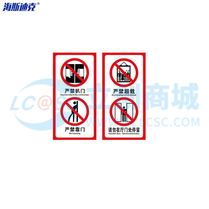 海斯迪克 警示标识 gnjz-1334 10*20cm 电梯警示牌安全标识严禁扒门禁止依靠 请勿在厅门处停留 安全标识 PP背胶贴纸