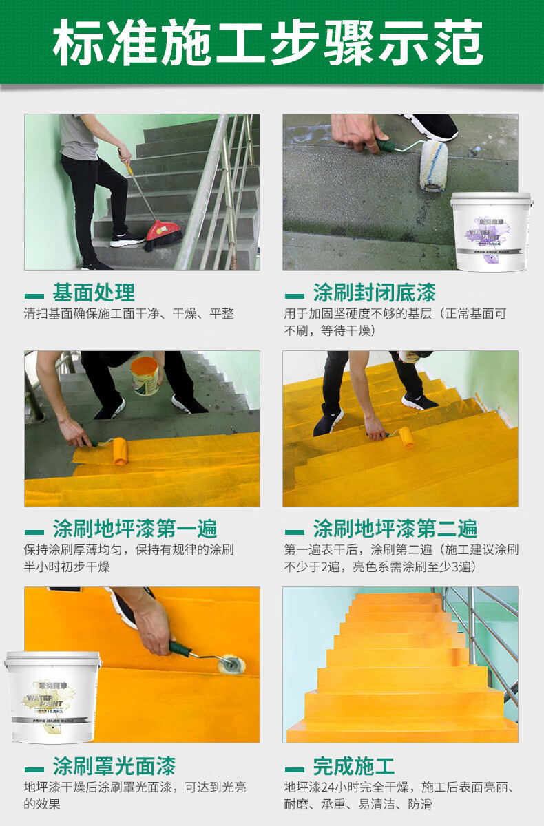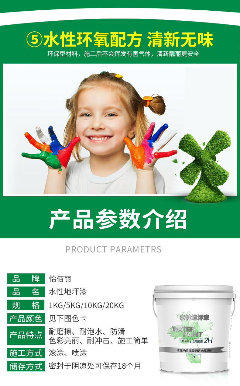 怡佰丽 水性环氧地坪漆防滑耐磨家用工厂车库教室水泥地环保油漆 中黄色 10公斤