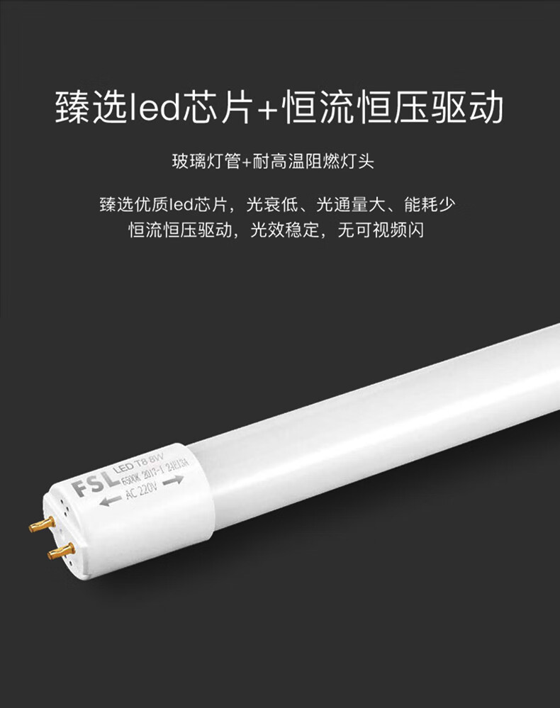 佛山照明 T8-0.6米8w 双端供电 LED灯管日光灯管
