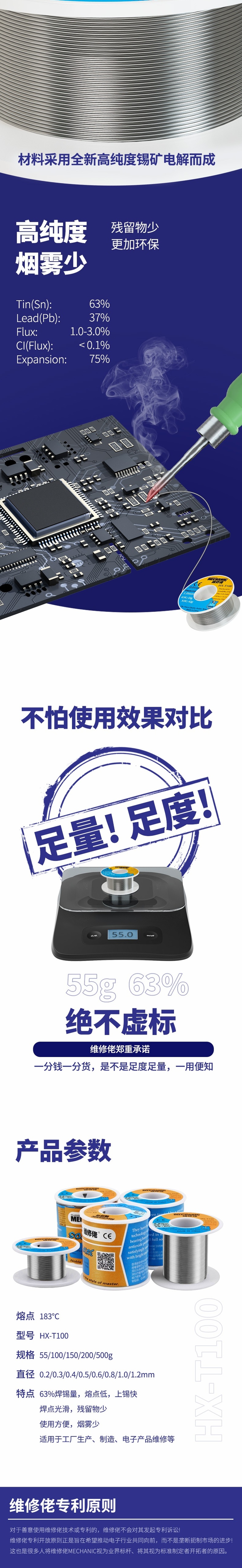 成分与熔点:含锡量63%,熔点低至183℃,上锡速度快,能快速浸润焊接面,适配不耐高温的纸质PCB板、细间距及高精密元件焊接,有效避免连锡、立碑、移位等不良现象