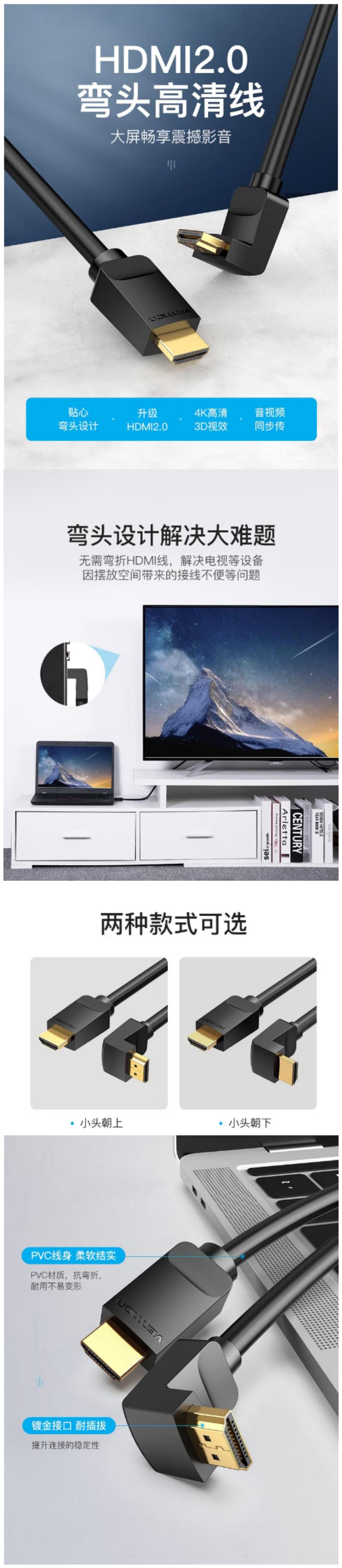 特别推荐用于电视柜、机架、桌面下方等空间紧凑的场所,避免传统直头HDMI线因无法伸入而造成的接线困扰。