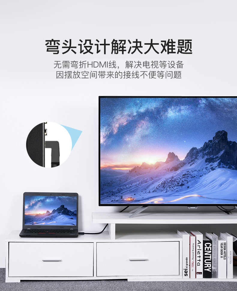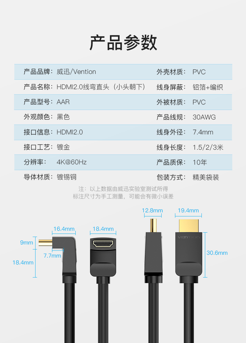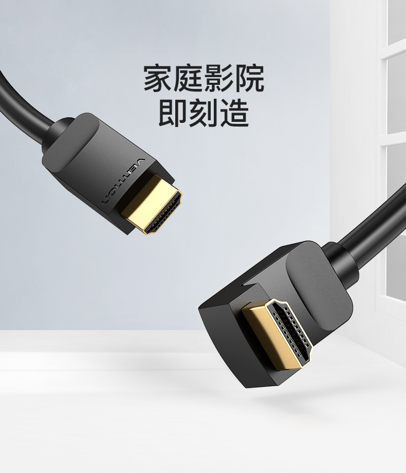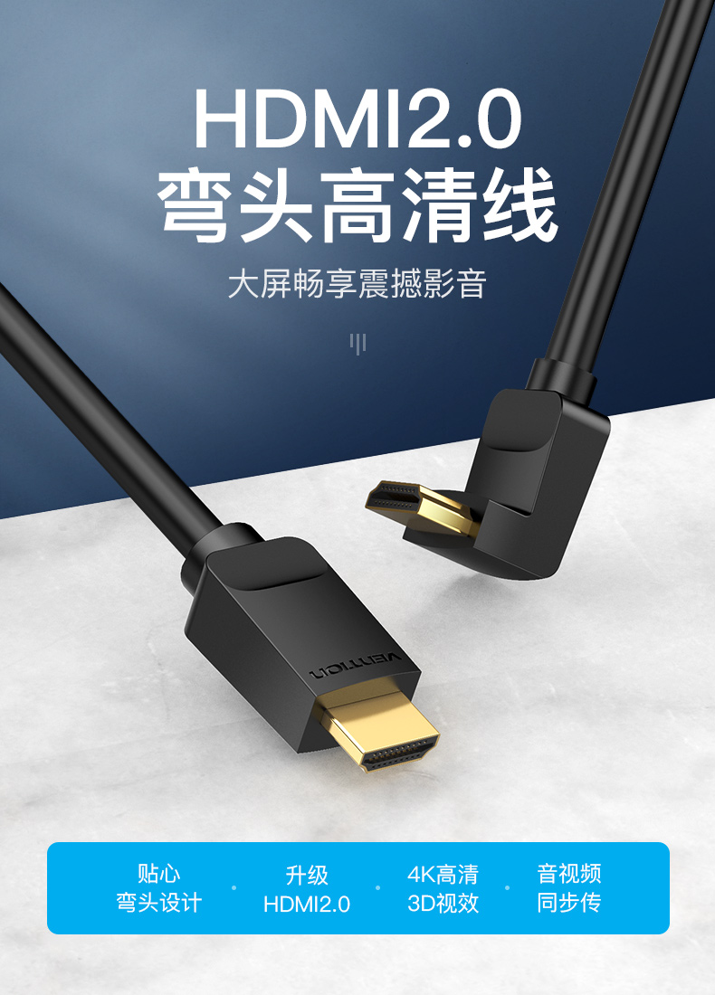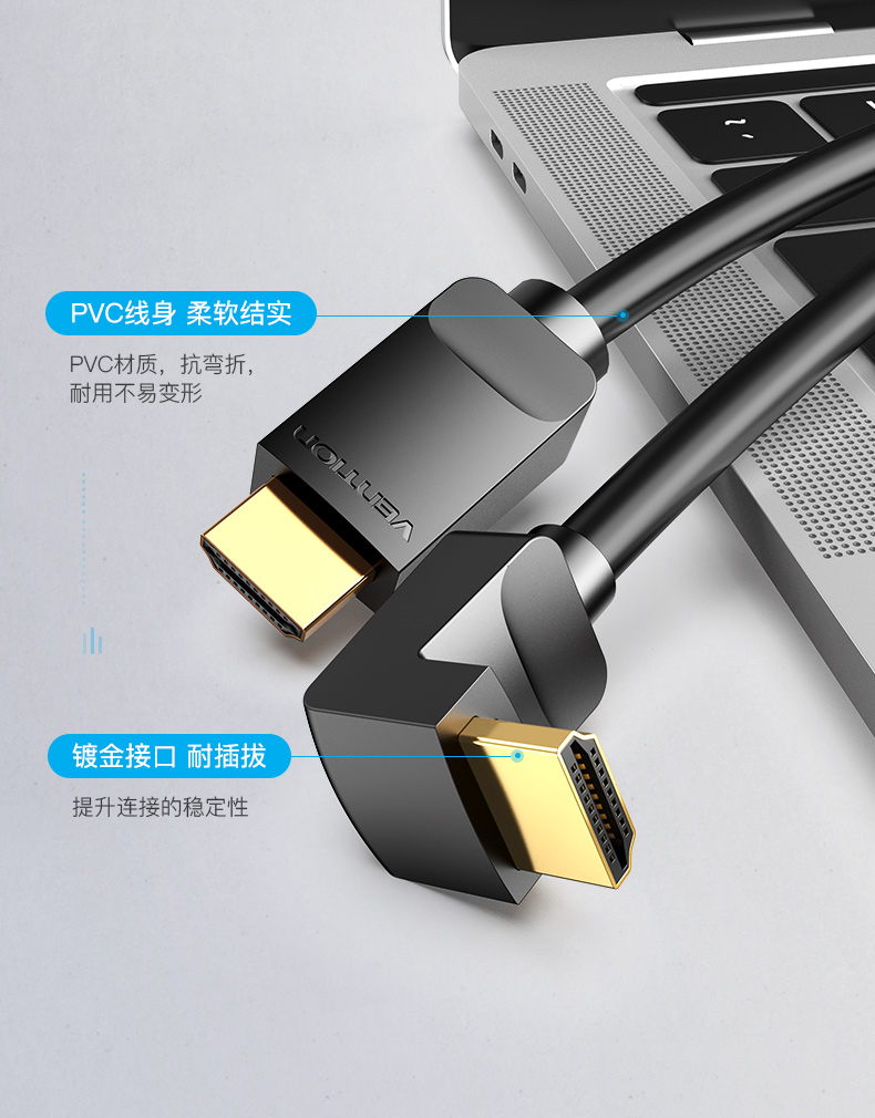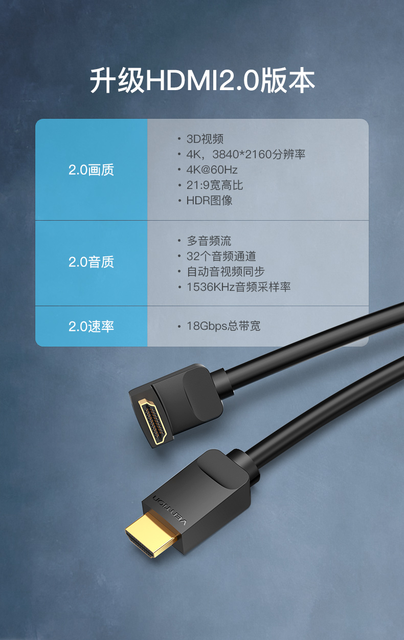 威迅HDMI线2.0版 90度直角弯头高清视频连接线 电脑连接电视机投影仪显示器 大边朝外 黑色2米AARBH
