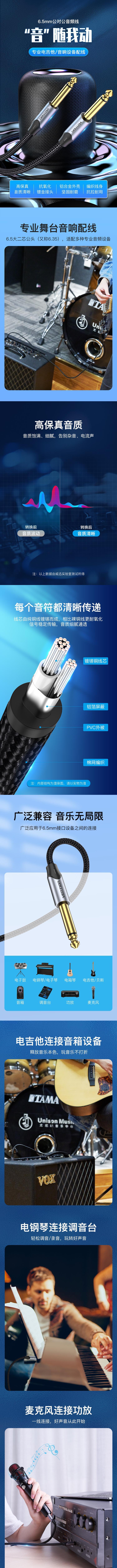威迅BAS系列TS 6.35mm公对公音频线铝合金款棉网编织灰色10米