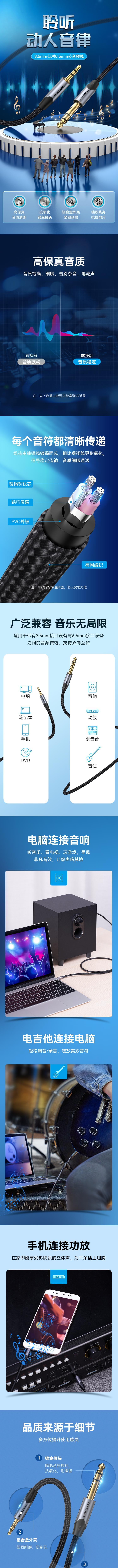 威迅BAU系列TRS 3.5mm公对6.35mm公音频线铝合金款棉网编织灰色5米
