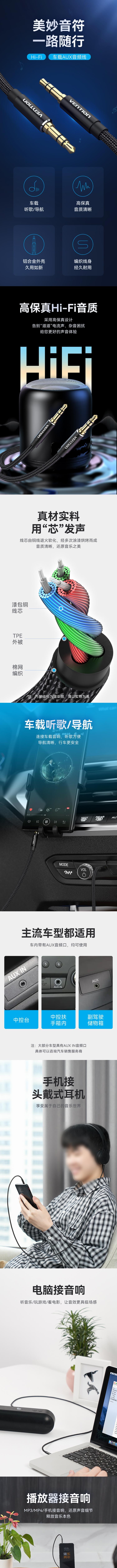 威迅BAW系列3.5mm公对公音频线铝合金款棉网编织黑色3米