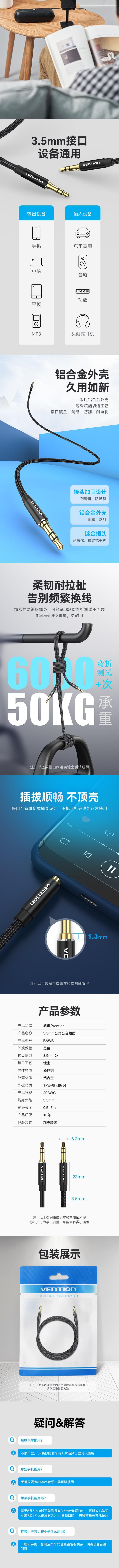 威迅BAW系列3.5mm公对公音频线铝合金款棉网编织黑色5米