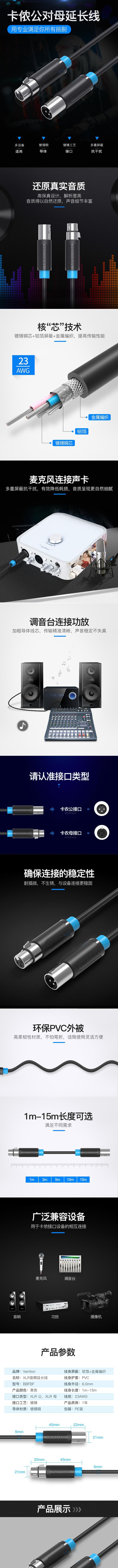 威迅BBF系列卡侬公对母延长线黑色1.5米