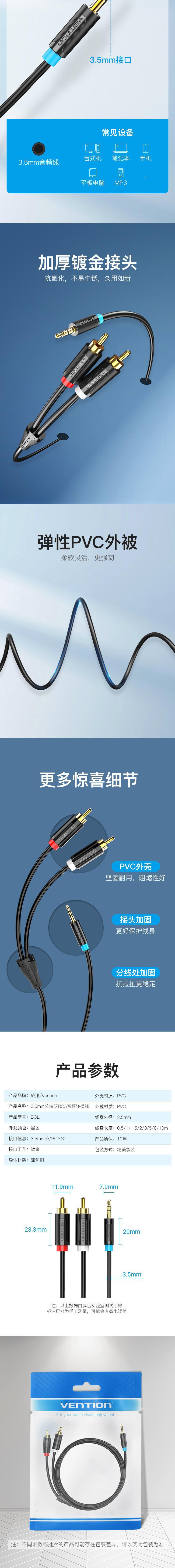 威迅BCL系列3.5mm公转双RCA公音频线黑色1.5米