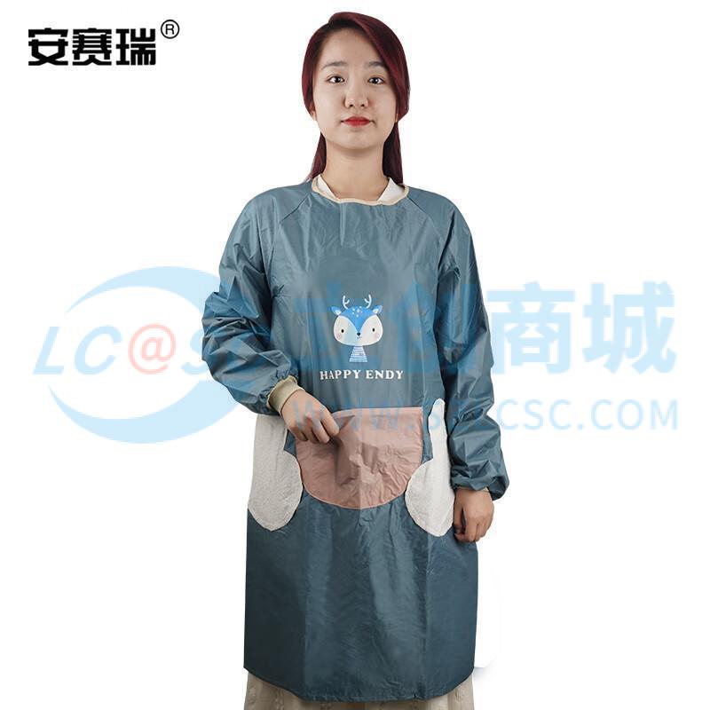 安赛瑞 可擦手长袖围裙 防水防油污成人厨房反穿罩衣 皮蓝 均码 301292