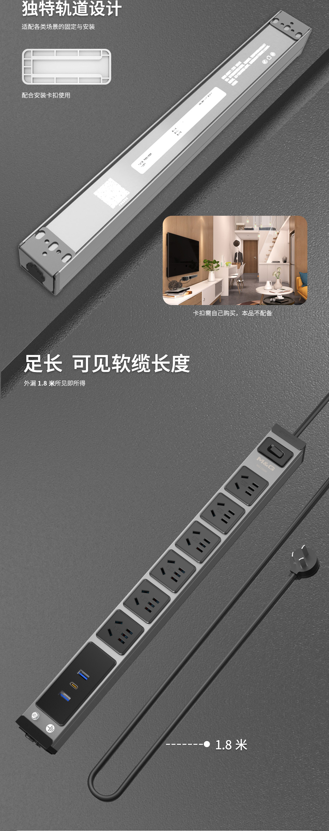 MAKE GREAT(突破电气) 星月灰、10A、三合一开关、USB模块、6位、新国标五孔、1.8m线长、国标插头