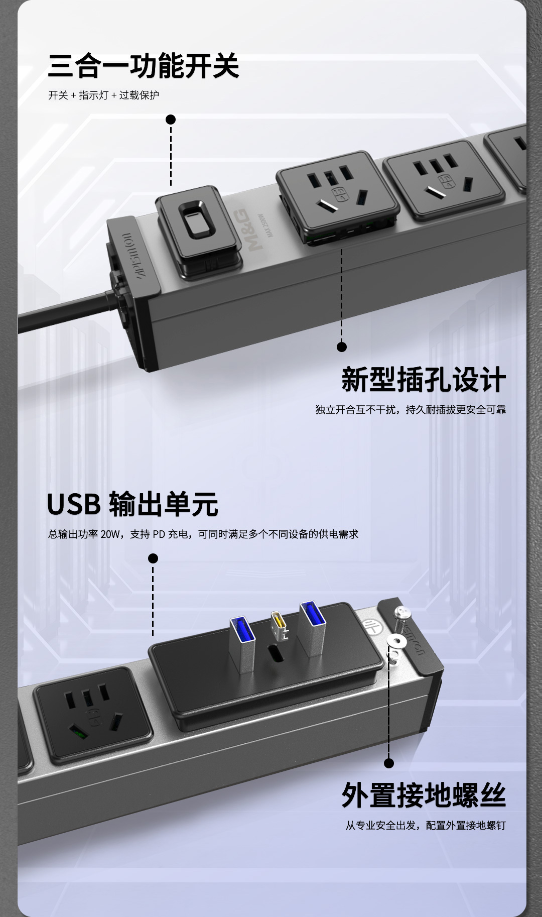 2 三合一功能开关:集成开关、指示灯与过载保护功能,提升用电安全性