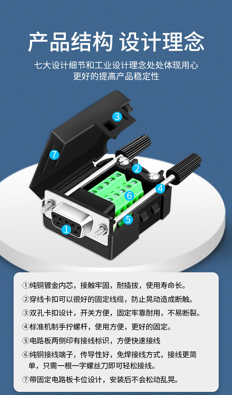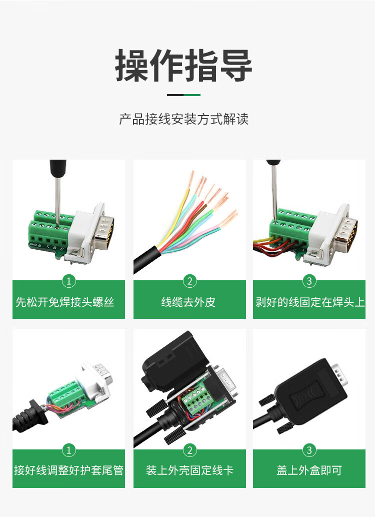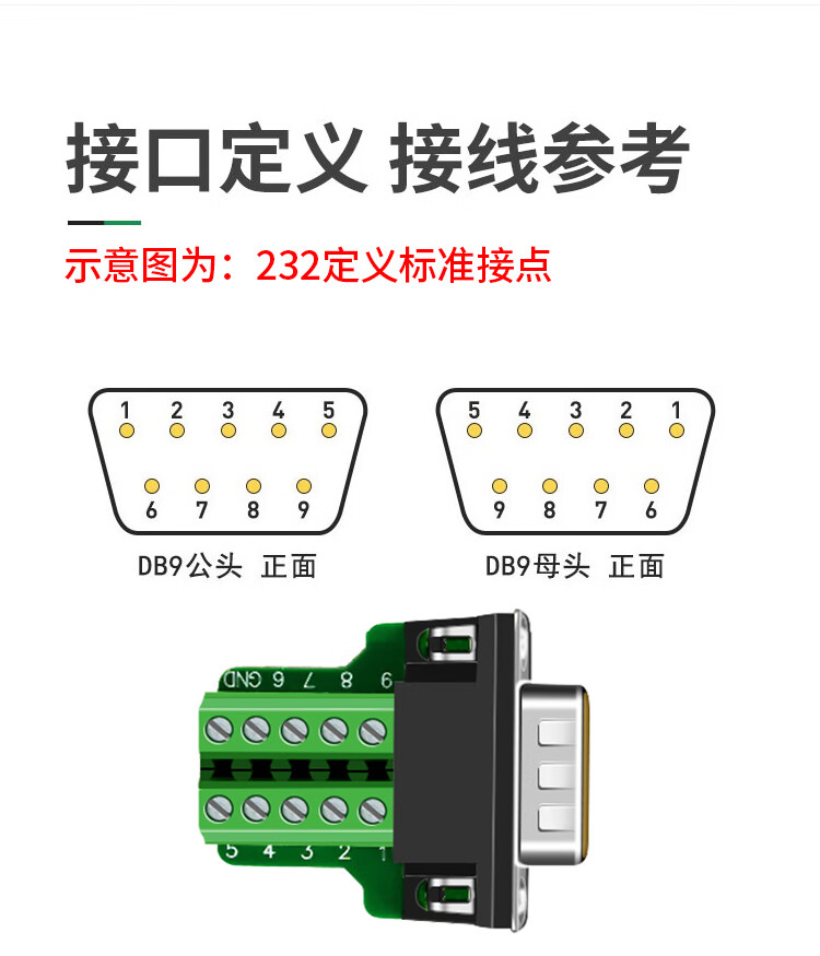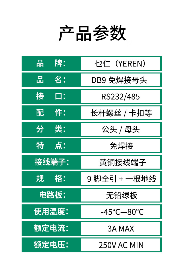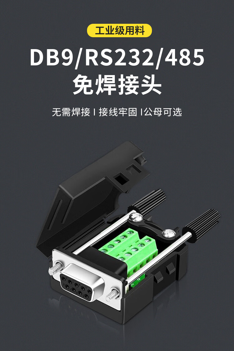 也仁 DB9免焊接头 RS232/485/422插头 9针COM口插头 免焊串口转接母头 单个装 CKX20