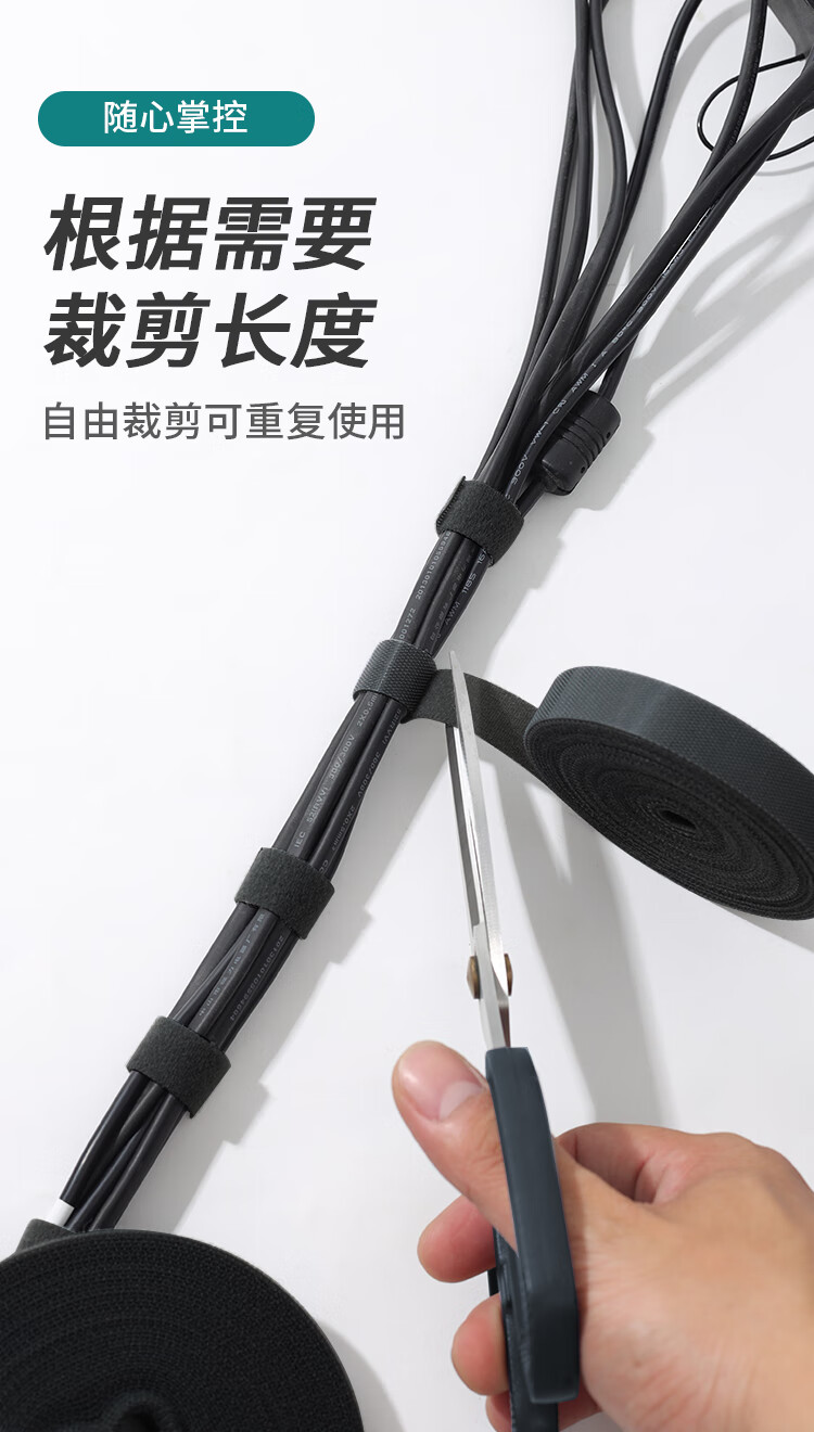 也仁 魔术贴理线带2cm宽 背靠背收纳粘扣整理固定 耳机数据充电线电脑电源线缆束线扎带 5米 YR-LXD5B