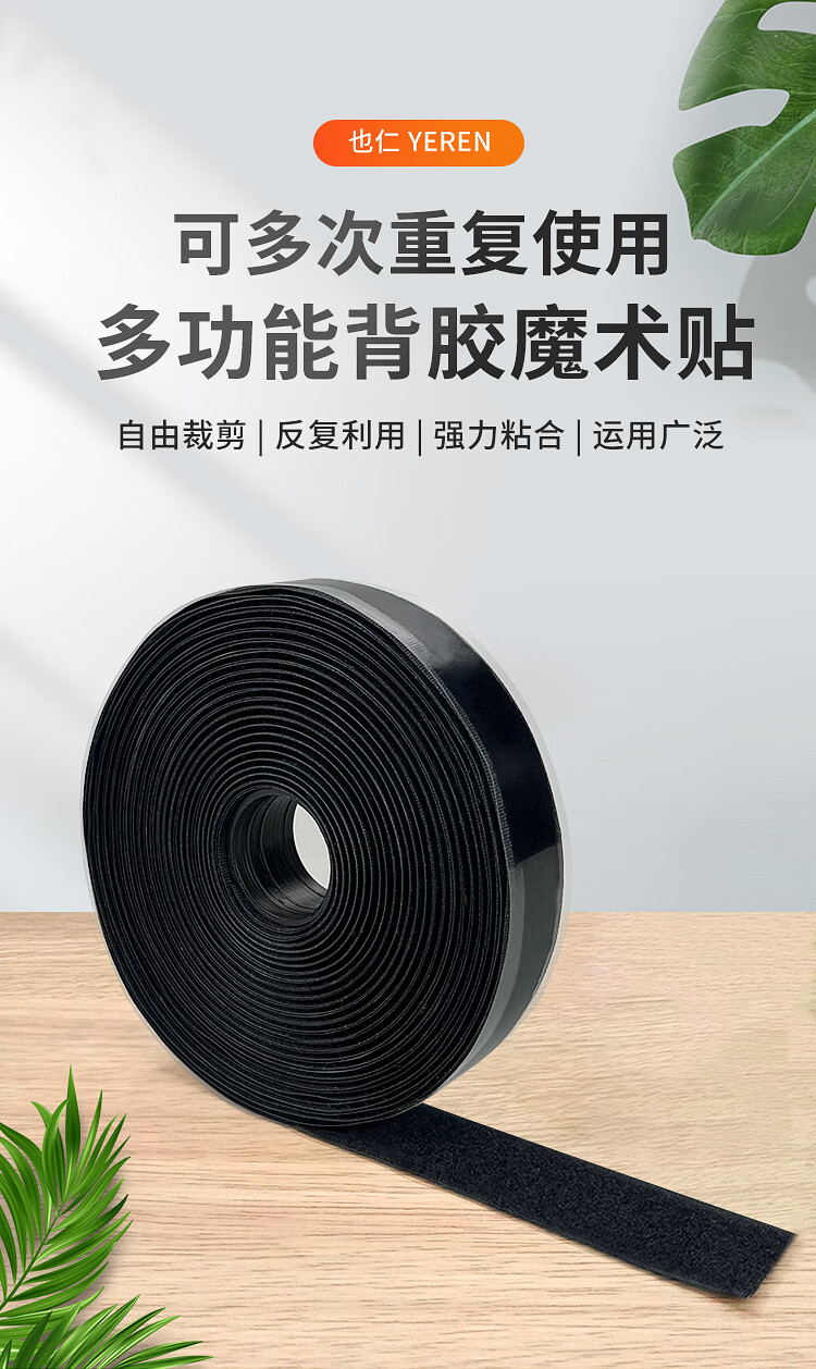 也仁 96双面背胶魔术贴 2CM宽单独毛面5米子母扣门窗纱帘收纳固定免打孔墙贴汽车脚垫自粘带